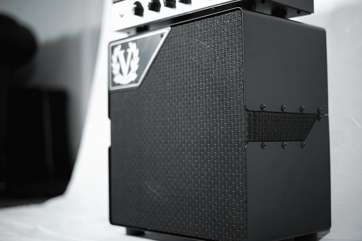 Our speaker cabinets are hand built in England using redwood pine for top and sides and quality Baltic birch ply for backs and baffles. Our speaker baffles are angled back by 2-3 degrees to help with projection towards you when you’re playing. They’re finished in black bronco vinyl (cream for the V112C and V212VC) with vintage black woven grille cloth to match aesthetically – and of course tonally – with our heads.